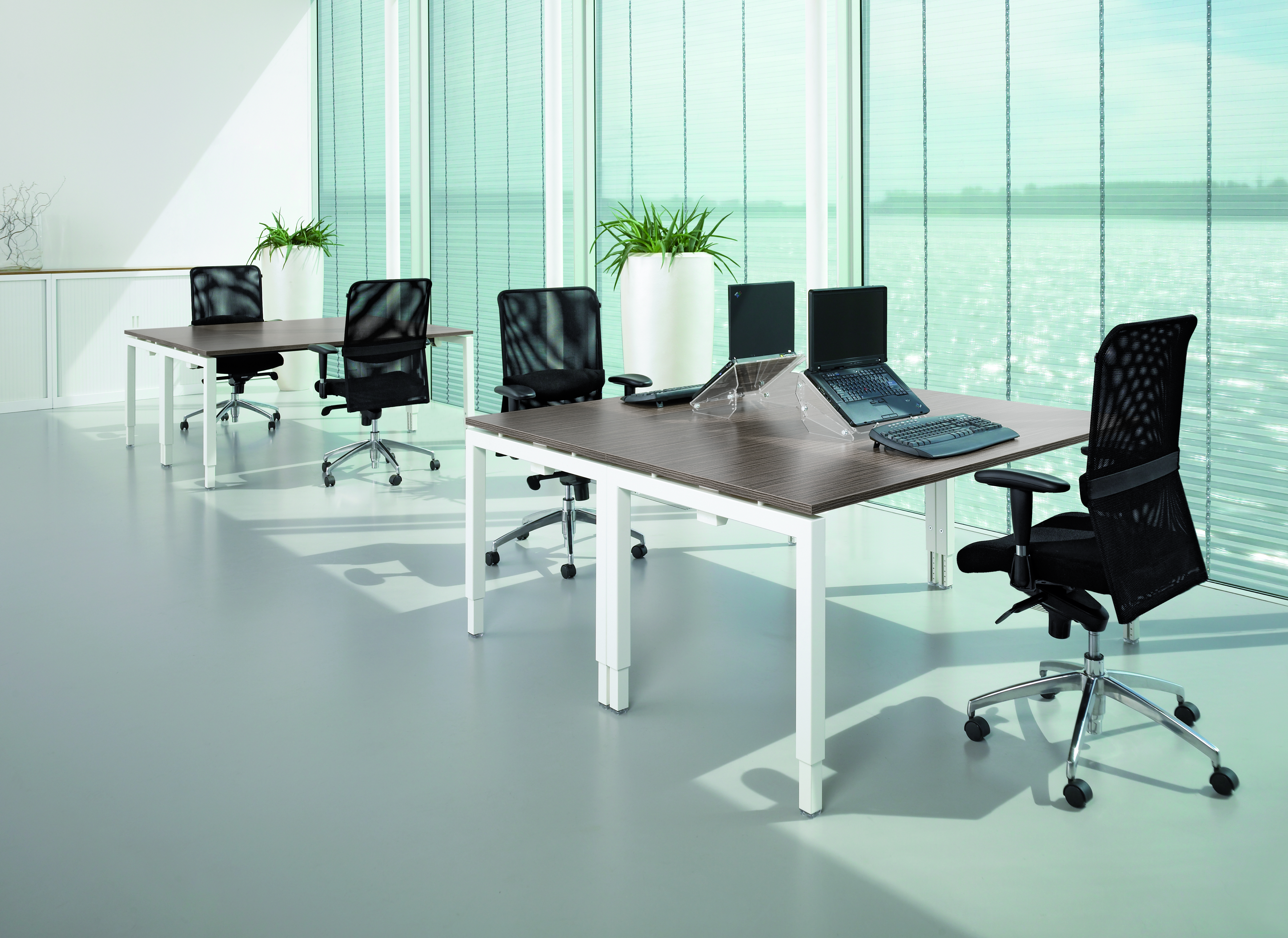 Het design van MO4 is krachtig, rustig en logisch. Zwevende bladen, doordachte aanbouwmogelijkheden en pootstellen in diverse uitvoeringen typeren MO4. Daarnaast zijn MO4 tafels snel schakelbaar en gemakkelijk in te stellen. Een werkplekopstelling is zodoende in een handomdraai uitgebreid of aangepast. MO4 biedt onder het blad diverse voorzieningen voor bekabeling.